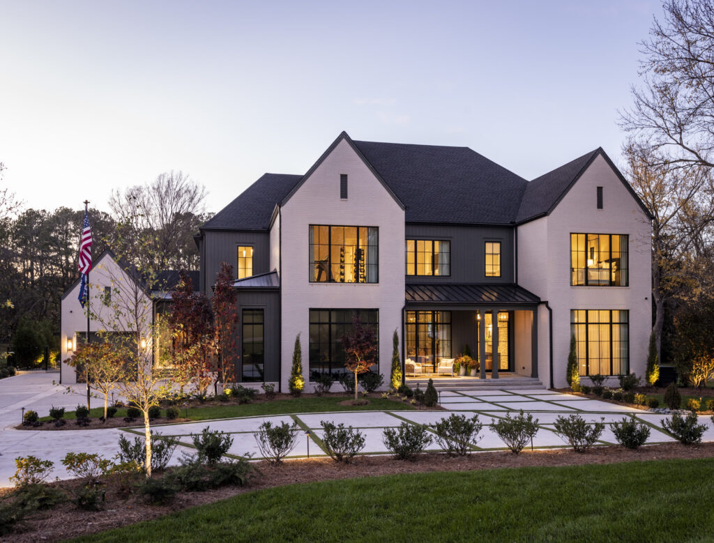 • Wide-plank white oak flooring, designer lighting, and custom draperies