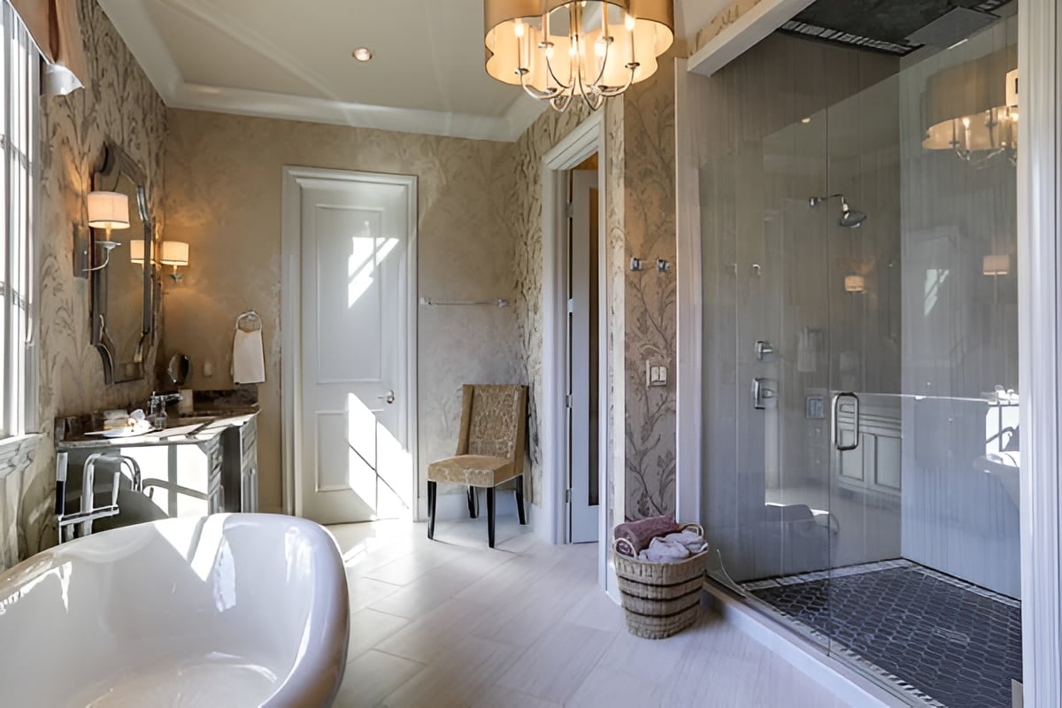 The retreat style master bath offers a gorgeous soaking tub and spacious shower in the LCT Team new listing in Annandale, a former Parade house built by Legend Homes.