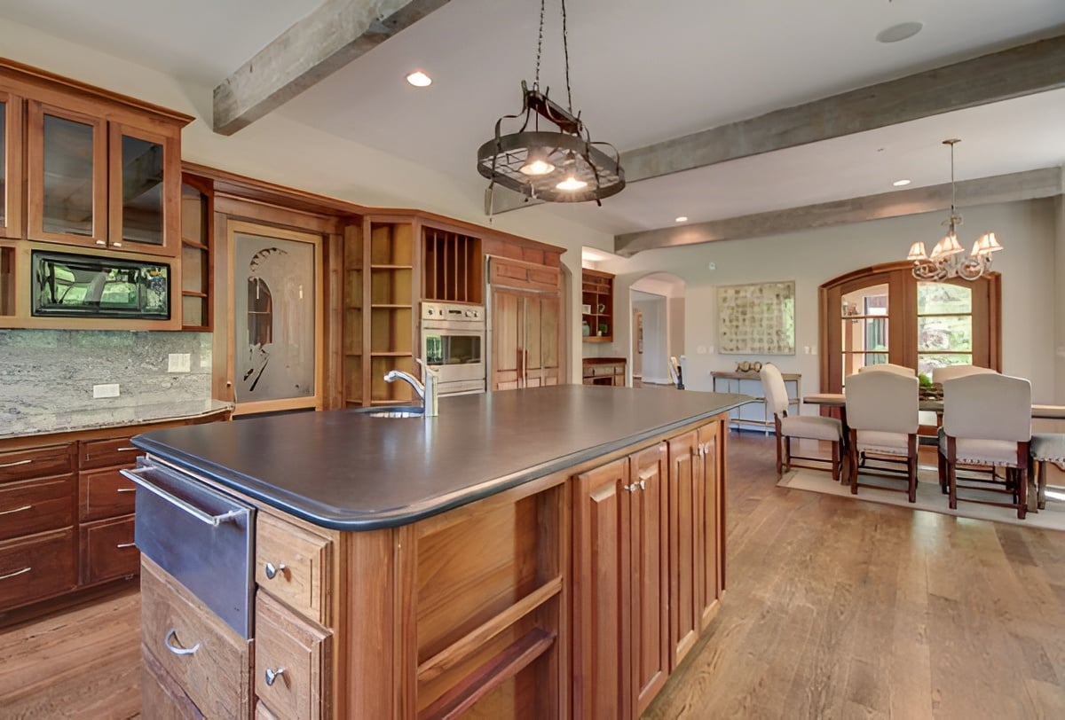 This stunning kitchen, available at 2060 Hillsboro Road in Franklin, has plenty of room for cooking and opens to the charming breakfast area with beautiful views of the large property.