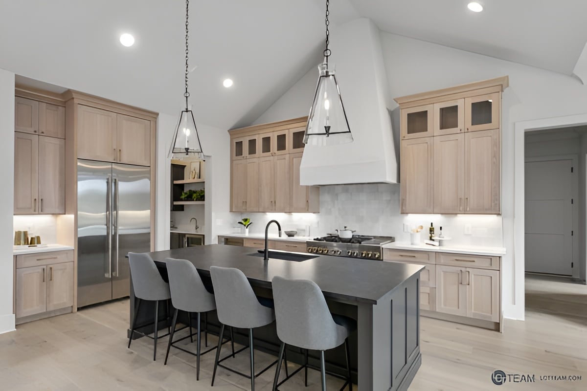 Available in Brentwood’s gated, Cartwright Close neighborhood, this gourmet kitchen has cabinet panels for the refrigerator and freezer. Built by Trace Constructionclick for listing info.