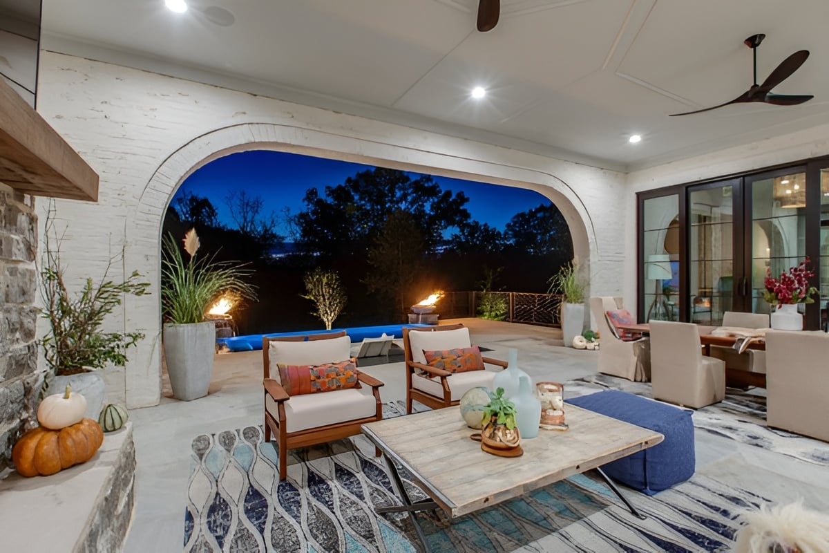Maximizing a home site to take full advantage of the property is important to Doug in creatively planning a house. The outdoor living area of the Legend Parade of Homes house in The Grove is a great example of this.