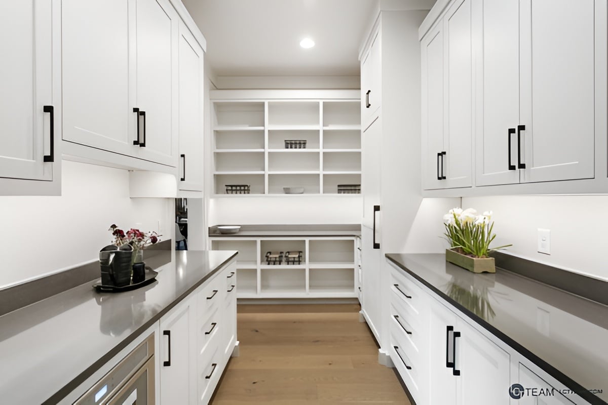This smart prep kitchen helps separate the working area from the beautiful entertaining spaces of this stunning Trace Construction home available in Brentwood, TN.