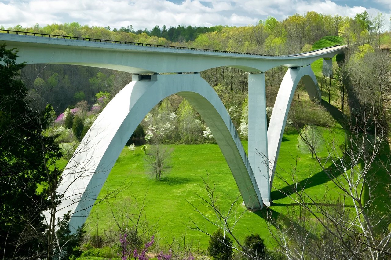 The Natchez Trace Parkway Bridge offers uninterrupted views of the hills.