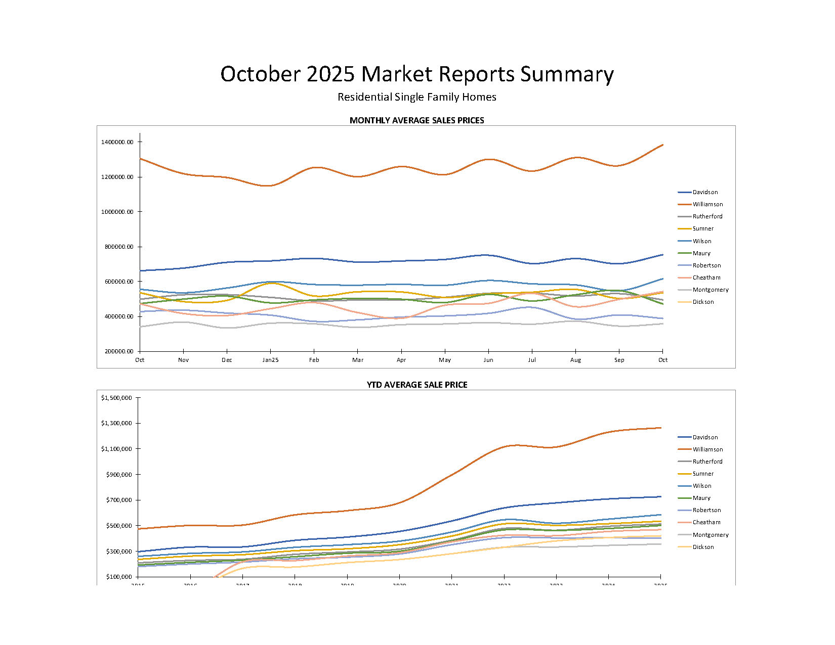 As we move deeper into fall, the Middle Tennessee housing market remains active, with Williamson and Davidson Counties leading steady growth across the region. While high demand continues to drive competitive pricing—particularly in luxury markets like Franklin and Brentwood—inventory gains and slightly longer days on market signal the continued move toward a more balanced market.